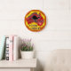 The Australia travel design on this round wall clock is made to resemble a vintage travel sticker, with the edges slightly distressed. It shows a black silhouette of a kangaroo over a red outline of the Australian map picture. The words say, "Australia / The Land Down Under." The design also includes a small heart. If you love the country of Australia and the retro vacation-sticker look, this pretty clock is perfect for you.