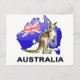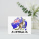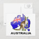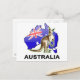 Australia is the smallest continent; between the South Pacific and the Indian Ocean. A kangaroo is superimposed on the flag filled map of Australia.