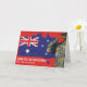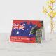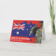 Australia REMEMBRANCE DAY Armed Forces card with CUSTOMIZABLE TEXT, showing the flag of AUSTRALIA against a vibrant red background with an image of military personnel. On the inside, there is a simple greeting, which is customisable, so you can create your own greeting and add your name. This is a modern, stylish greeting card to send to family and friends for Australian Remembrance Day seasons.