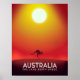 Australia " The land down under" vacation print of a kangaroo silhouetted against the hot sun in the outback.