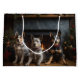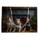An enchanting scene captures the essence of cosiness and holiday spirit as furry companions adorned in Santa Claus hats gather around a crackling fireplace. The warmth emanating from the hearth creates a snug atmosphere for these adorable canines, while festive stockings hang in the background, enhancing the merry ambiance. The charming illustration portrays a timeless image of companionship and festive joy, perfect for celebrating the holiday season with a touch of canine charm.