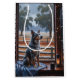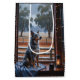A heartwarming holiday scene featuring a dog sitting peacefully beside a window, surrounded by glowing Christmas lights. This cosy and festive design captures the spirit of the season, perfect for adding warmth and charm to any space. Ideal for dog lovers and holiday decor enthusiasts.