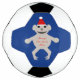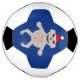 This awesome soccer ball features a cute cartoon of a Koala bear wearing a red and white festive santa hat. The Koala is grey with black eyes, brown nose and a smile. There is bright red text inside the tummy of the Koala that says "merry Christmas mate". This fun design is great for all Australians at home and all around the world.