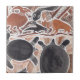 My series of tempera: "Australian Dreams". These series were made for children art lesson about Aboriginal Art. Turtles, fishes, snake and other animals (mythical animals). Brown and black colours. Ceramic Tile.