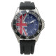 The Australian Flag and Union Jack Flag design presented here on a carbon fibre and chrome style print. Good for a patriotic occasion, sports, or for a fashion watch gift with an automotive urban industrial look.