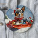 Australian Kelpie in Sledge Let it Snow Christmas 6 Cm Round Badge