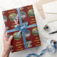 Funny, or humourous, Aussie animals all dressed up in their holiday best! There's a yellow crested cockatoo sitting on a pine garland branch with shiny bauble ornaments, a koala licking a big candy cane, and a kangaroo mum with a red and white fur Santa hat, and baby roo with a green, white, and red rope of shiny gold bells. Text says "Merry Christmas from Australia," but you can personalise or customise it with your own seasons greetings message or family surname or gift recipient name or vacation dates or whatever.
