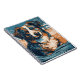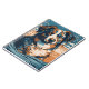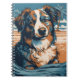 Colourful vivid art design of a Australian Shepherd at a tropical beach.