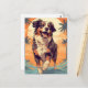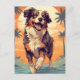 Colourful vivid art design of a Australian Shepherd at a tropical beach.