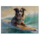 Australian Shepherd Beach Surfing Painting Cutting Board
