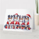 Smart and beautiful Australian Shepherds, with their stunning merle coats, are ready for the holidays in their festive Santa outfits. A perfect design for Aussie enthusiasts and herding dog lovers.