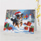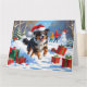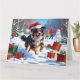 A heartwarming holiday illustration featuring a cheerful dog playing in the snow, wearing a Santa hat and surrounded by colourful gift boxes. In the background, children build a snowman beside a snow-covered Christmas tree, creating a joyful winter wonderland. Perfect for spreading holiday cheer and capturing the magic of Christmas.
