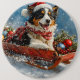 Australian Shepherd Dog in Sledge Chriistmas 6 Cm Round Badge