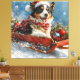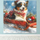 Australian Shepherd Dog in Sledge Chriistmas Canvas Print