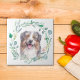 An watercolor portrait of a beautiful Australian Shepherd Dog inside a blue green leaf wreath is the feature on this decorative and useful tile. Perfect for any one who loves an Aussie.