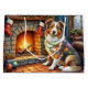 Celebrate the season with this heartwarming illustration of an Australian Shepherd sitting beside a glowing fireplace, wrapped in colorful Christmas lights with festive stockings hanging above. This cozy holiday artwork highlights the Aussie’s loyal, intelligent, and playful spirit—perfect for dog lovers who adore this beautiful herding breed. Ideal for Zazzle holiday gifts, seasonal décor, and anyone wanting a warm and cheerful Christmas design featuring their favorite dog.