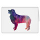 Dog Breed side view of Australian Shepherd filled with colourful purple geometric pattern. This silhouette can also represent: Aussie, Border Collie, Welsh Sheepdog, English Shepherd, McNab, New Zealand heading, Atlas Shepherd, Mountain Shepherd, Australian Kelpie, Berber, Bohemian herder, Croatian herder, American herder, Drent, Drenthe, Dutch Gundog, Dutch Partridge Dog, Mudi, Old Farm Collie, Scottish Collie