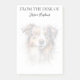 These post-its are awesome! They feature an adorable watercolor Australian Shepherd and have "From The Desk Of" and your name in a modern script font. They'd be a super cute gift for your Australian Shepherd loving friends or family.