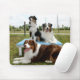 This trio of Aussies pose together after a day of agility and fun! This mousepad features a red tri Aussie, a blue merle Aussie, and a black tri Australian Shepherd puppy.
