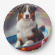 Australian Shepherd on Paddle: A Scenic Adventure Paper Plate
