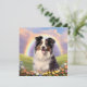 A personalised Australian Shepherd memorial sympathy card with a beautiful painting of a Australian Shepherd on a heavenly hill with a beautiful rainbow overhead. Symbolising the Australian Shepherd dog has passed the rainbow bridge to doggy heaven. You can personalise it with your own Australian Shepherd dog's name or any other text on the back side of the card. Makes a special memorial or sympathy gift for any Australian Shepherd dog lover if their dear dog has passed.