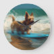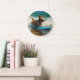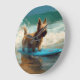 Immerse yourself in the playful world of canine adventure with this captivating painting. A spirited dog takes to the waves, skilfully riding the surf on a sun-kissed beach. The vibrant artwork beautifully captures the essence of beachside excitement as the dog fearlessly rides the waves, embodying the spirit of fun and freedom. With a harmonious blend of colours and dynamic brushstrokes, this piece brings the joy of surfing and the beach right into your space, making it a delightful addition to any art collection.