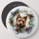 Australian Terrier Christmas Wreath Festive Pup 6 Cm Round Badge