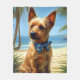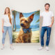 Australian Terrier On Beach dog lover summer gift Fleece Blanket