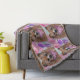 A quality printed throw has its advantages. This is a much finer weave throw than its loopier cousins, and though lighter, it is worth the investment for custom room accessorizing. The back is much prettier than the typical brown, and the fringe on the long sides very vivid, the selvage nicely done. Before photographing, I washed the throw in cold water, delicate, with a thicker woven throw the same size. On tumble dry low, this throw was dry in half the time as the other. This is a very practical quality if you use throws for furniture covers or to wrap up in frequently. The sleekness of the fabric makes it a great layer for accenting or protecting without the feeling of sitting on too much stuff. Perfect for napping or when you feel a light chill coming on. The color printing is beautiful and on this fabric, matched the design and color of my Photoshop image. This is an advantage for blending room fabrics and colors. The fringe on the short sides prints the colors from the design image and therefore varies from the side fringe. I streaked a white fractal line through the plaid pattern to give the illusion of weaving. This printed as crisp as an illusory thread, and put some white in the short side fringe, showing another advantage of print vs loomed- for artistic purposes, line lines, detail, and color integrity can be planned and preserved. My loomed throws have color limitations and more of a needlepoint texture. Print throws reproduce an exact image. The throw felt a little stiff straight out of the package, but this went away in the first delicate wash. Of course I searched the wash water for ink or bleeding and there was none.