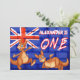 Modern Australian Themed First Birthday Invitation. Design features of Kangaroos and Australian Flag.