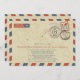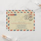Personalise your wedding with this distressed Airmail Letter Travel Design for your Destination Wedding to Austria. Map outline of the world. Two red hearts on the places where the bride and groom are from. This one is Washington DC USA and Germany. The dotted lines bringing them together. The stamp shows the location of AUSTRIA where the wedding will be held in . If you need different locations or a colour change or cards to go along with this theme please email paula@labellarue.com