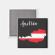 Show everyone your love for the country of Austria with this unique magnet featuring a map of Austria filled in with the colours of the Austrian flag. The text and the background colour of the product can be changed to fit your preference.