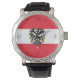 Austria National Flag Elegant Patriotic Watch with the country flag in the national colours printed all over the watch. Transparent watch numbers are placed over the flag colours. This splendid design will always keep you informed about the time and it looks gorgeous. What more to ask! © CountriesOfTheWorld