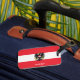 Austria National Flag Patriotic Luggage Tag with the Austria flag printed over the one side of the tag. Country name written with the vibrant font is integrated in the design on the bottom. Text is fully customisable using "Customise it!" feature. Other side of the tag is reserved for your information. This adorable Austria Luggage Tag is the perfect companion for your travel bag and the lovely gift for any occasion. © CountriesOfTheWorld
