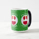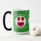 Magic morphing mug shows an Austrian angel, dressed in the flag of Austria, inside a white, fractal circle of squiggly squares. The circle is on a green fractal background of squiggly squares. Add a name, holiday, and year to personalise your mug as a gift or to add to your holiday decorating. Lovely for Christmas decor. Design shows on three sides of mug. Use the "edit design" option to change the font and/or colour of the name, holiday and year.
