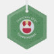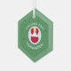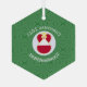 The red and white Austrian flag is worn by an angel that flies in a white circle of squiggly squares. The background on this hexagon glass ornament is green squiggly squares for your Christmas decor this holiday season. Personalize by adding a name. Customize by adding a year. If you prefer, just add your own text.
