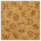 A collection of autenthic cattle brands as used in the Wild West on a background of pale leather.
