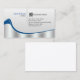 This elegant and striking author business card design features a wave shaped bottom with a chrome silver texture effect as the background. The top section is an off-white background. Both these sections are separated by a blue wavy stroke. Your name and details appear on the top. Perfect for business, administration, serious, minimal, simple, finance, publishing, printing, literature, literary arts, writing, professional themes.
