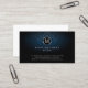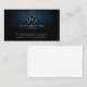 This author business card features your monogram letter within a chrome circle. Your name and title appear below this monogram letter and your contact details appear on the lower edge of the card. The background is a dark blue damask pattern, with a subtle gradient that appears lighter in the centre of the card. Perfect for publishing, printing, literature, literary arts, artistic, writing general themes