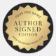 Add a custom 'Author Signed Edition' sticker to your books - perfect for book signing events, book launch and new releases. Featuring faux gold effect with black text and black border - add your pen name, website and custom text, this round book sticker is stylish and sleek and can match any book cover design.