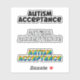 A sticker sheet with the words "Autism Acceptance" 3 times. One in solid black, one in white with a black outline and one in a rainbow text.