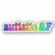 A rainbow retro typography design with the words "autism AF" to support and promote neurodiversity awareness, adhd, and autism acceptance.
