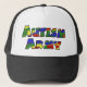 Let people know that you know someone with autism, and you are in the autism army. The words autism army are printed on the hat in primary colours in a camouflage pattern/style.