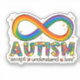 This design features the words "Accept, Love, Understand" with infinity symbol with an autism awareness colour. It is perfect for a person with autism or families of persons with autism.