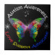 Unique and beautiful butterfly with autism puzzle piece, and a light from behind which represents hope for a cure, and the messages of “Love, Support, Advocate.” Wear Autism Awareness design to support and advocate the cause.