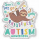 Don't Let Go of Your Uniqueness Autism Awareness inspirational quote featuring a sloth hanging on a tree branch.