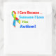 Popular Autism Awareness ribbon design. I care because someone I love has Autism. Popular bold print colourful design.
