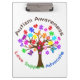 Beautiful and unique autism tree with autism puzzles, butterflies, hearts, and “Love Support Advocate” to support Autism Awareness.