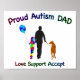 Proud Autism Dad and his child walking their dog in Autism puzzles, and “Love Support Accept” to support Autism Dad and his child.