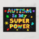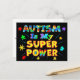 Positive message of “Autism Is My Super Power” with colourful Autism puzzles to show your autistic pride and support Autism Awareness. Being different is a Super Power!